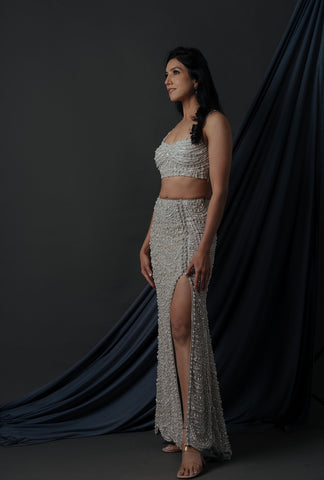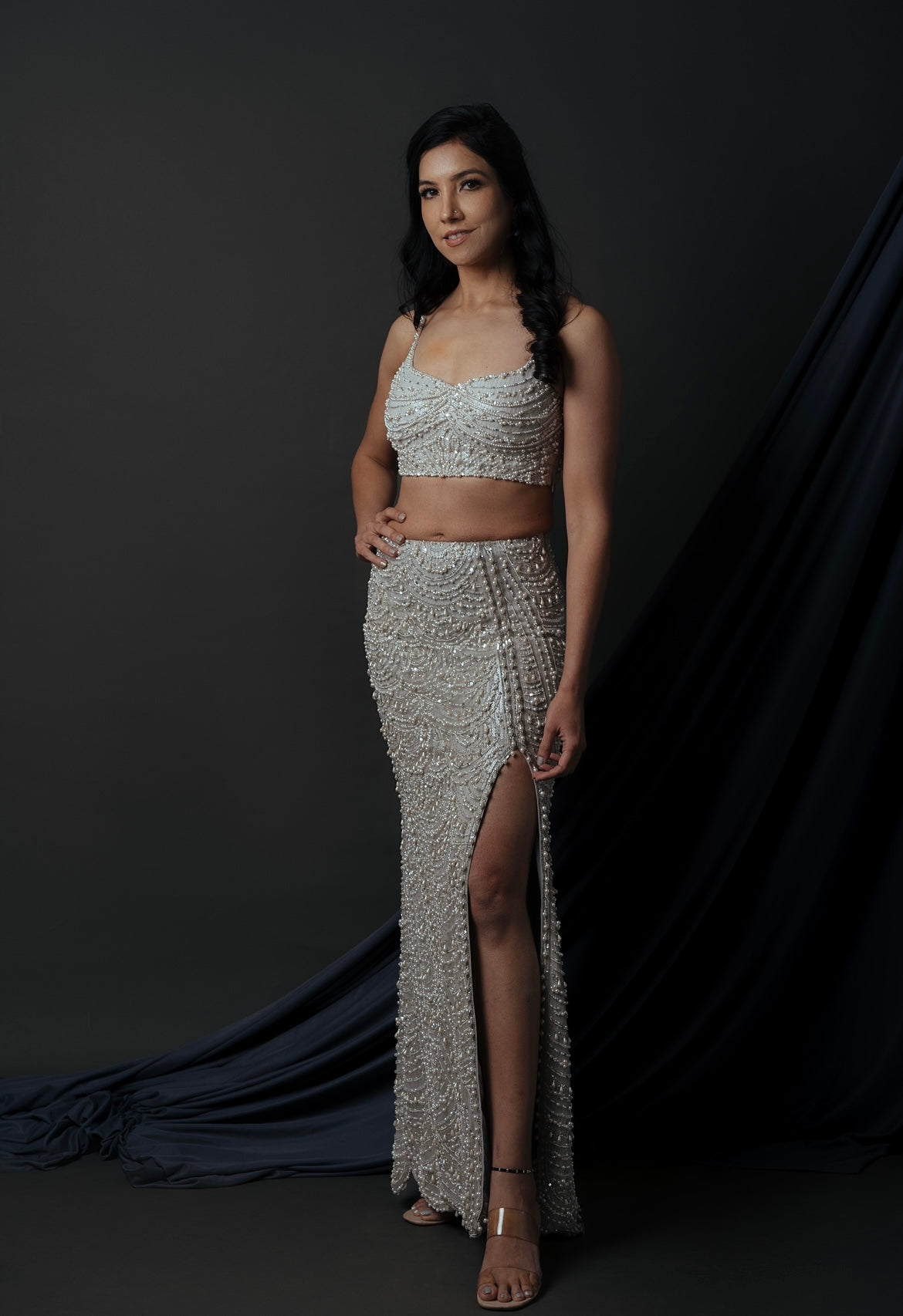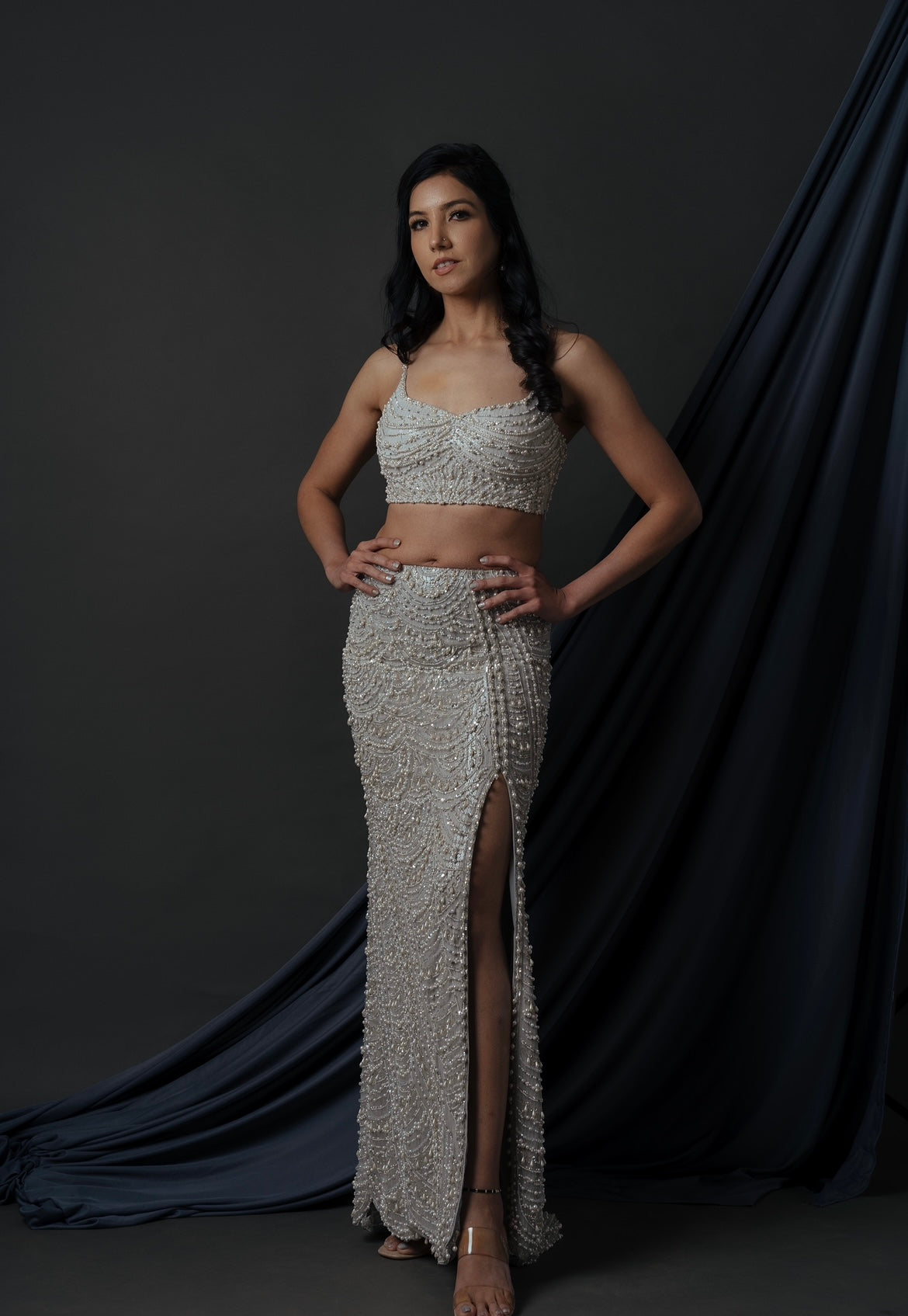 Embroidery details: pearl, sequins and cutpipe work